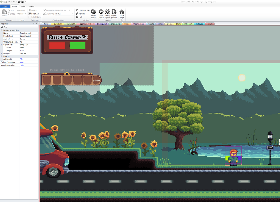 I'm currently working on two different games, for my puzzle game What Was Found at Ravenhill I'm using Visionaire Studio. For the game "You're Not Welcome to Rennville I'm using Construct 2