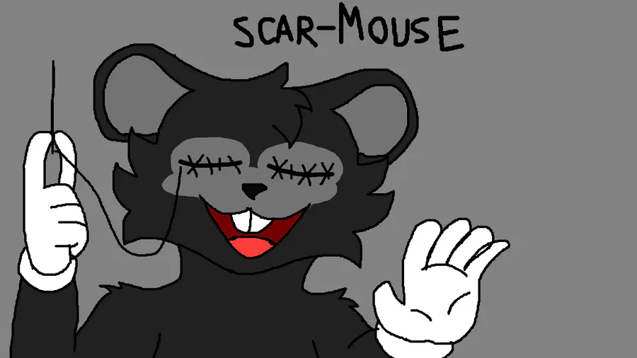 hola gente tuve una pesadilla de fnati en mi pesadilla aparecio un personaje que no aparece en los juegos de fnati su nombre es scar-mouse y es identico a suicide mouse pero a diferencia de eso sus ojos estan cocidos