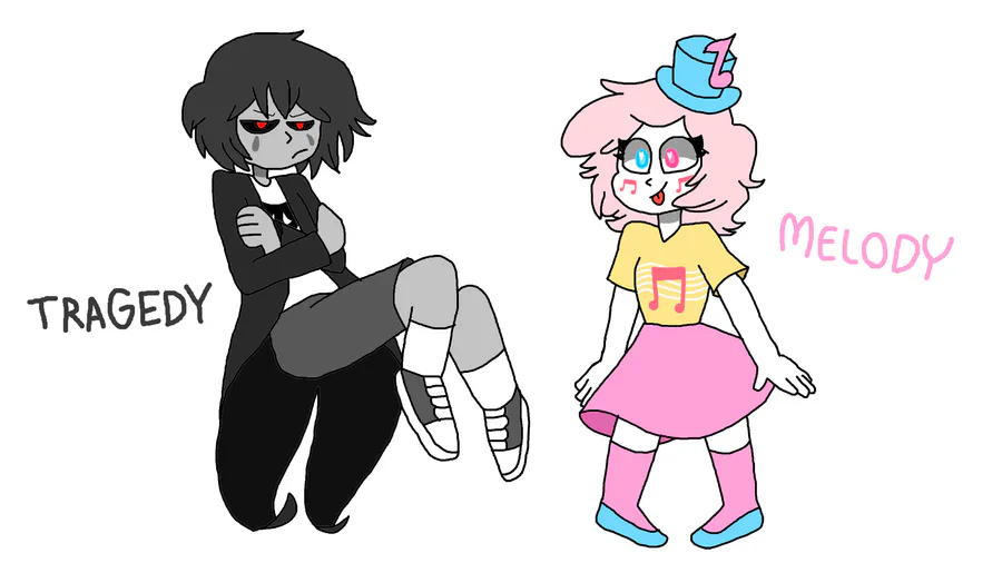 nuevos personajes de mi AU de fnaf los nombre son tragedy y melody aun que los diseños me inspire de pedd00chan Xd