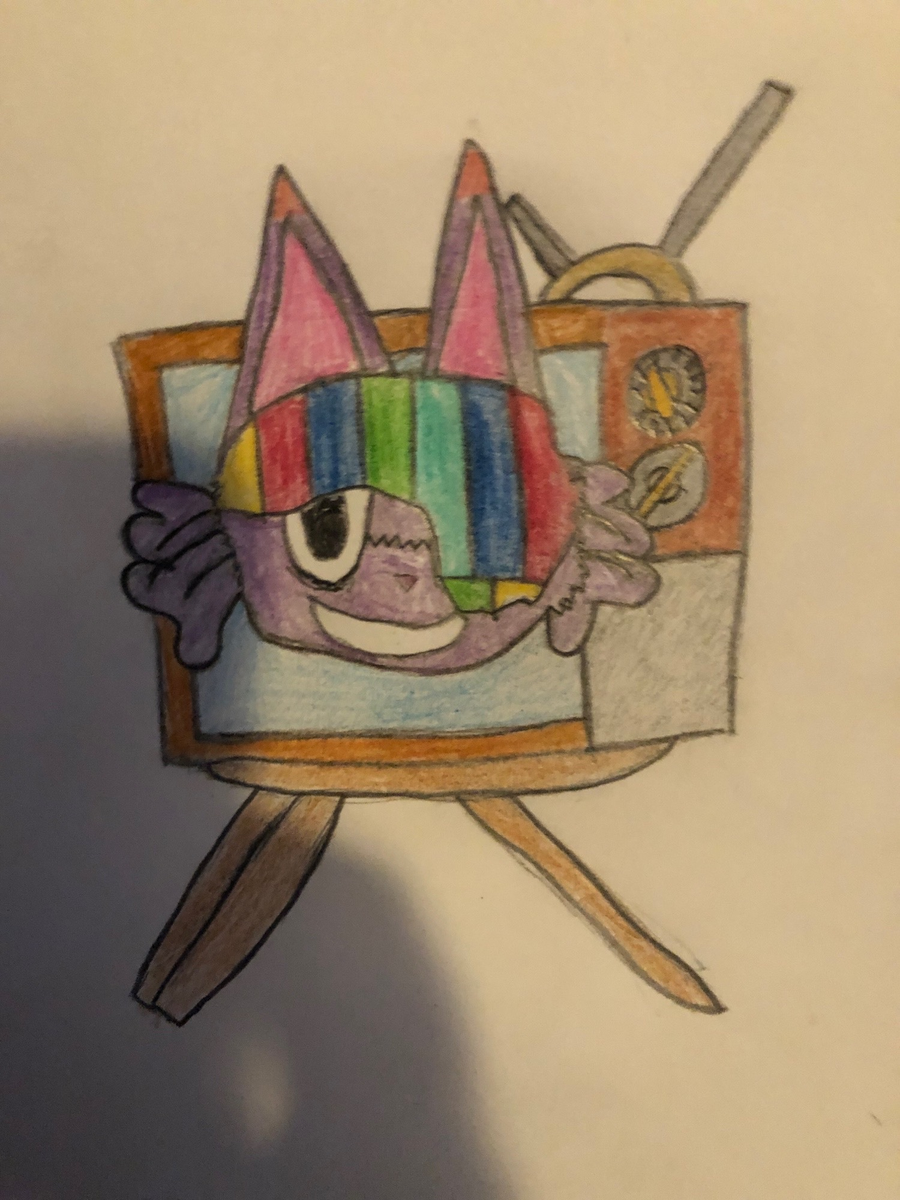 He is inspired by: catnap, mr puzzles, angel hare, alaster, pretty kitty, static Miku.
