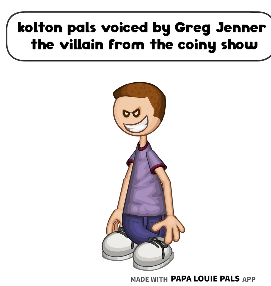 kolton pals is voiced by Greg Jenner the villain from the coiny show