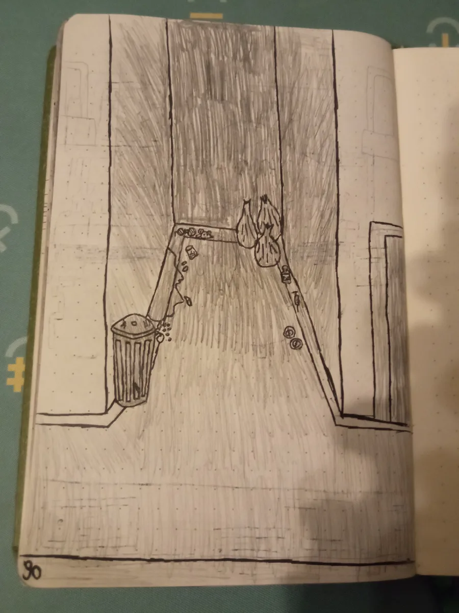 I feel like the shading was fine until I also shaded the floor and now it looks like a dark presence is in the alleyway