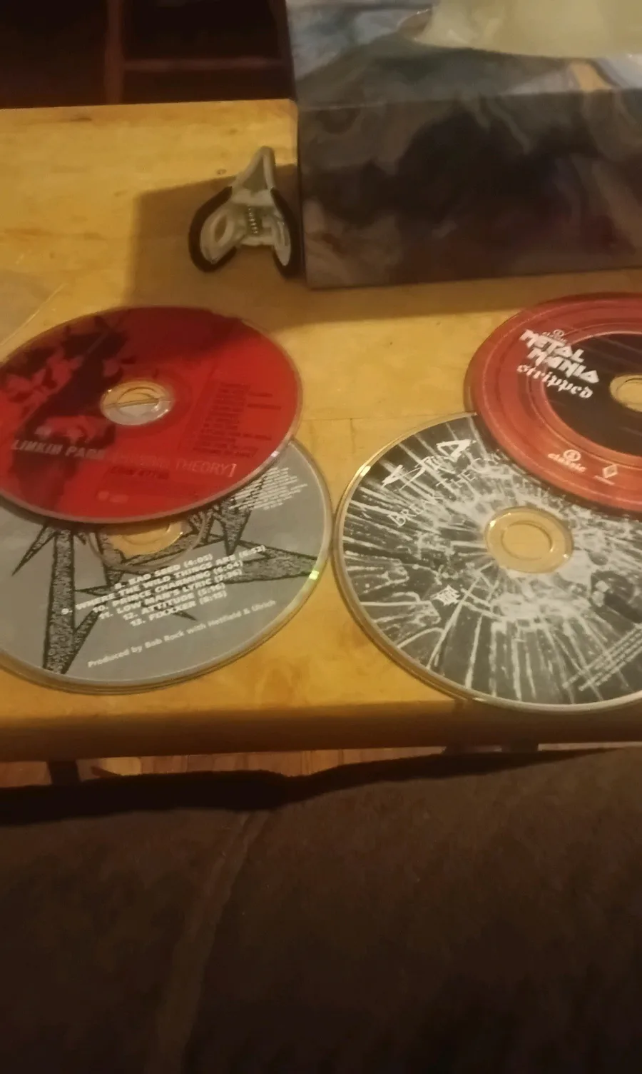 My grandma gave me some cds, linkin park hybrid theory, staind break the cycle, Metallica reload, and metal mania compilation album
