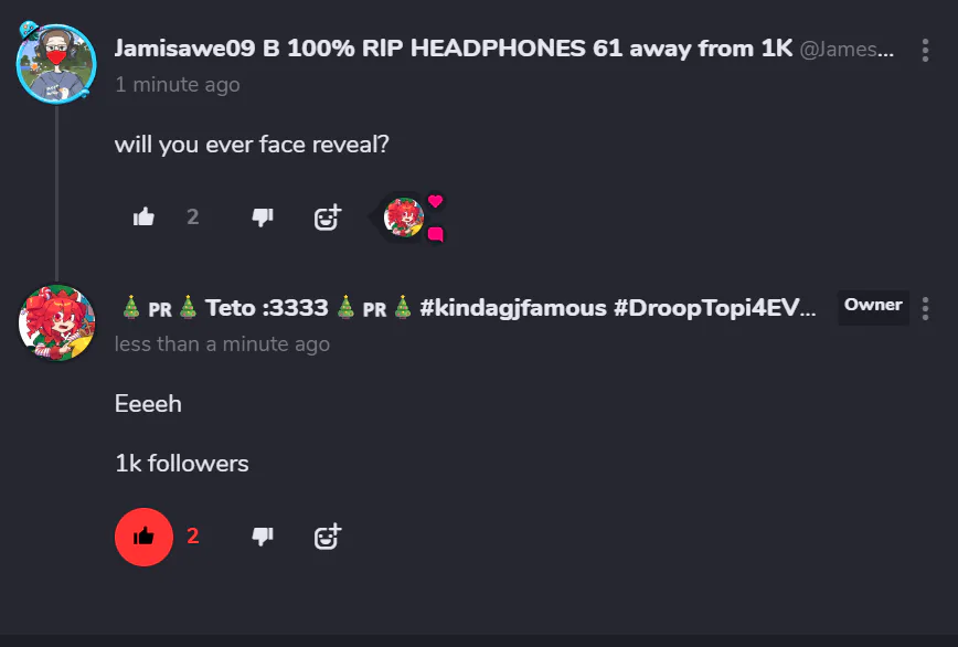 to 1K followers and he'll face reveal.