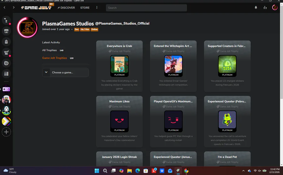 I just reached 100 Game Jolt Trophies :)