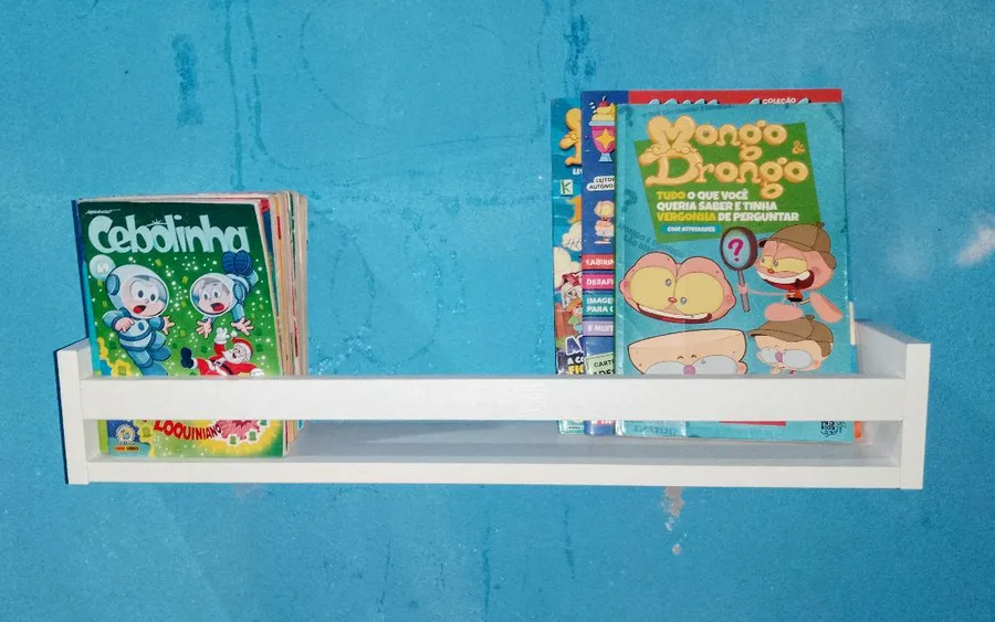 Montei a minha prateleira que comprei na internet!! Já coloquei minhas revistinhas e meus livros de mongo e drongo!
