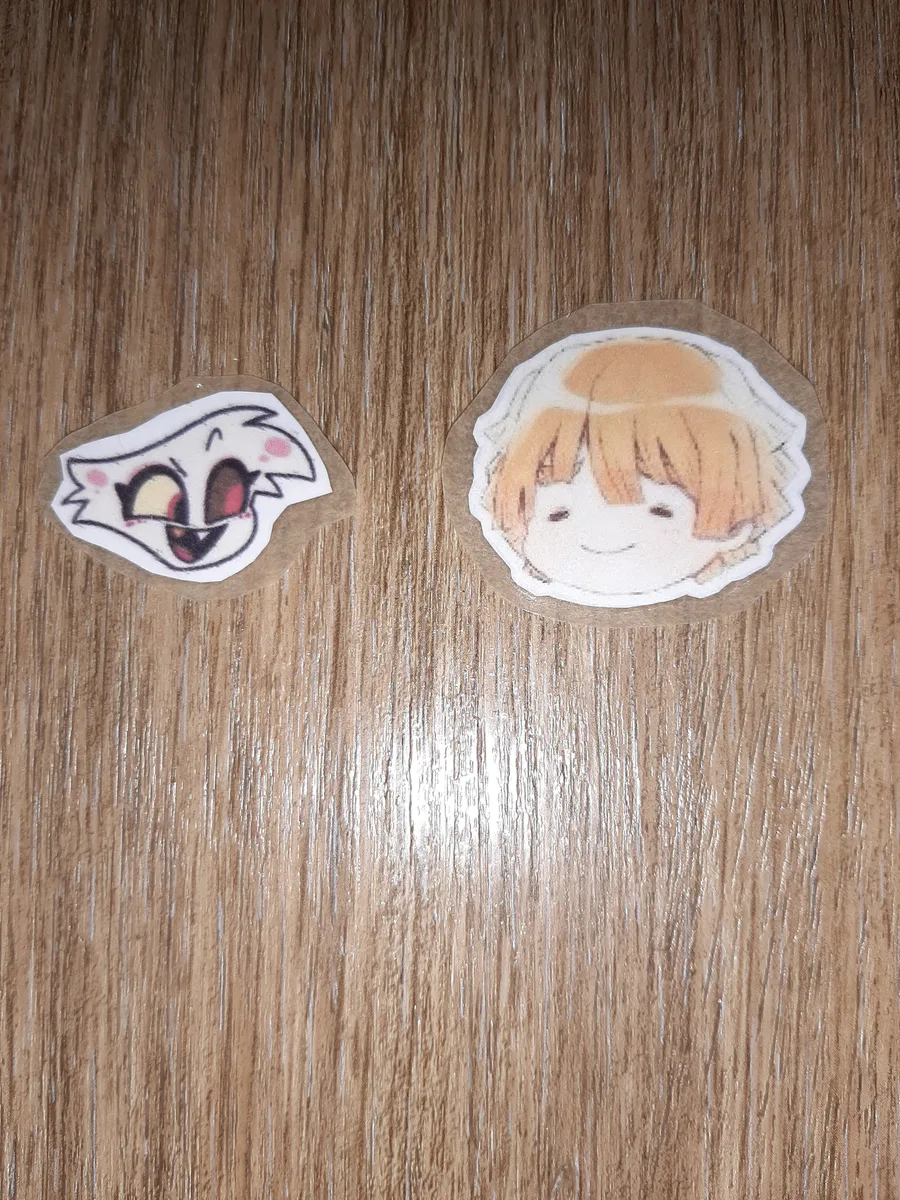 My best friend made me these two stickers! I'm so happy ahhhhhhhhhhh- #AngelDust #Husk #FatNuggets #HuskerDust #HazbinHotel