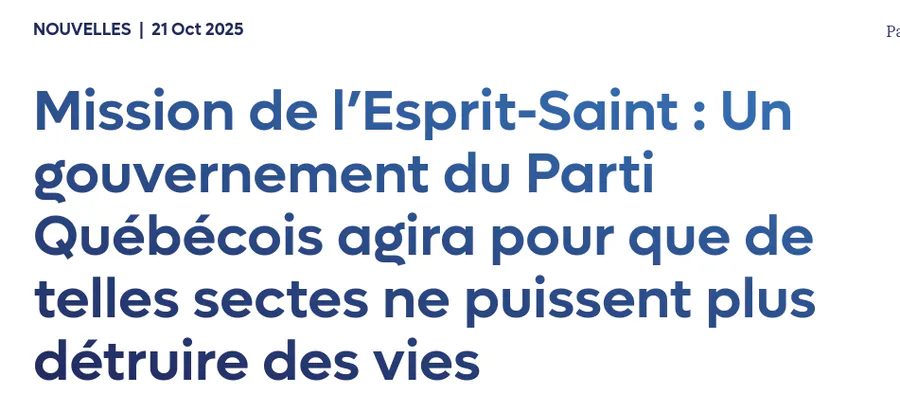 I take this with a grain of salt because it's a political party and they often promise things they don't deliver on, but the Quebecois party, if it comes to power, has said it will investigate this Canadian sect.