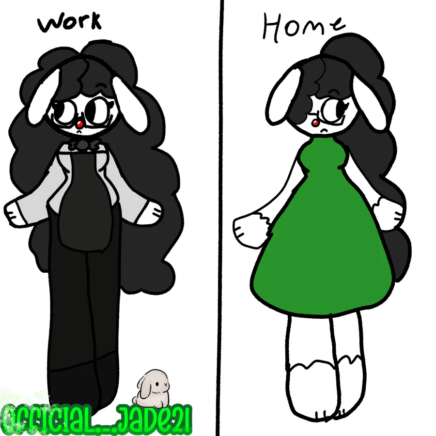 My main oc in work and home (a little update on her)