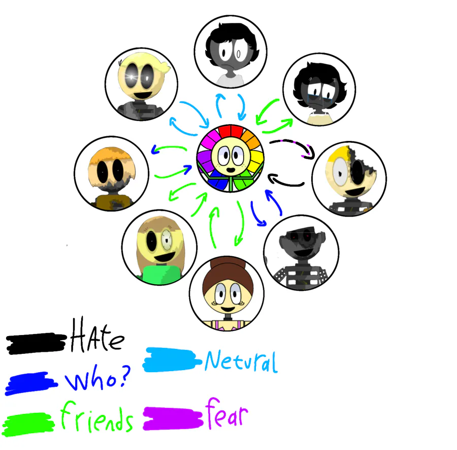 Because of that flowey was made but of course not only ony watch kids but also make them have fun, he have a minigame about color memory. Game is simple: repeat increasing sequences of colors by tapping buttons (buttons are his petals) and you get a gift. the only think boring about he can't walk Because children mostly get in and get out from the exit door so he was erected/built next to the exit. He was also wish to be walk again and after years passed (Because the factory abondoned LoL) the screws are rotten, with that that makes easy to break free but ıt's been a year since he walk. He now learn to walk around and climbing up to down, he won't attack but like beau (from fnic9 night X) he only attack the generator and you have to shock hım.