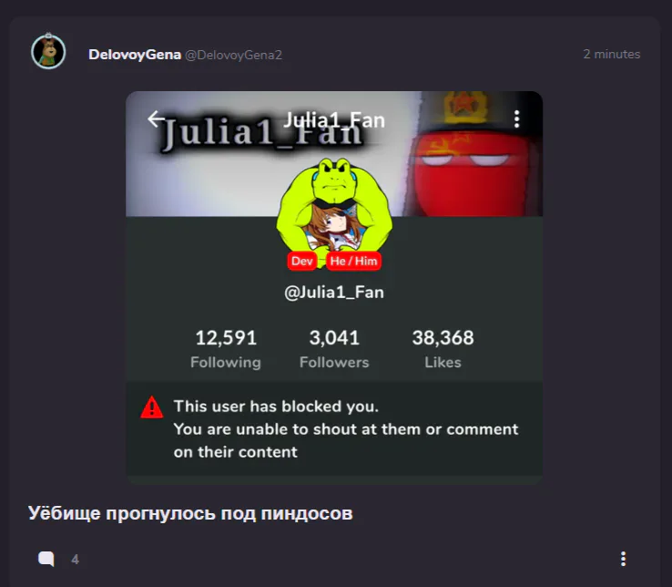 ты не охуел оскорблять меня и да ты нарушил мои правила