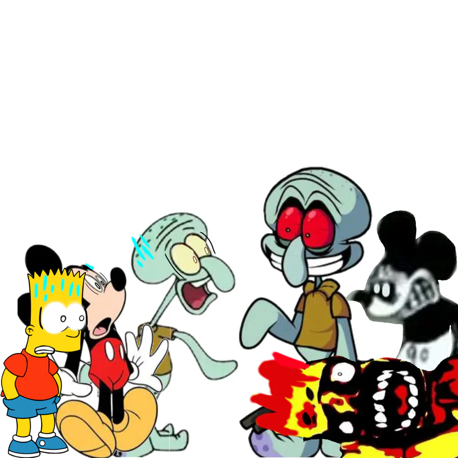 Squidward, Mickey mouse and bart meets red mist squidward, suicide mouse/mouse.avi and bart dead