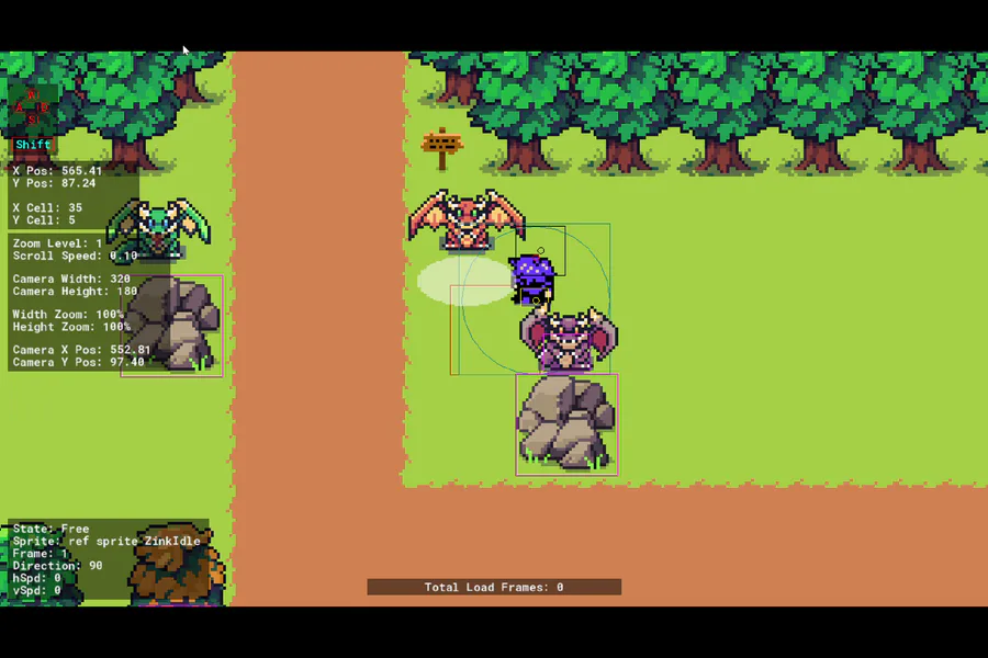 For day 1135 of coding, I'm working on having the player get knocked back from damage; using contact damage to test it. I don't have it working yet unfortunately