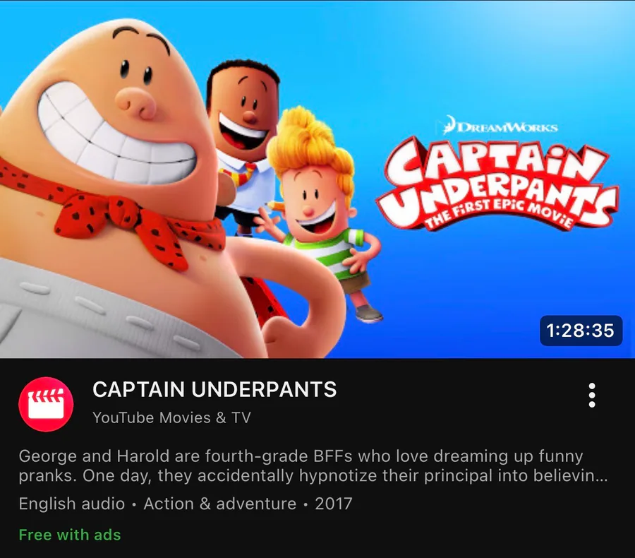 I actually just notice that The Captain Underpants movie is now free to watch