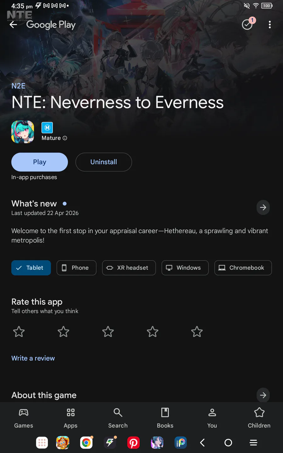 It says NTE on the game (I forgot what it's called)