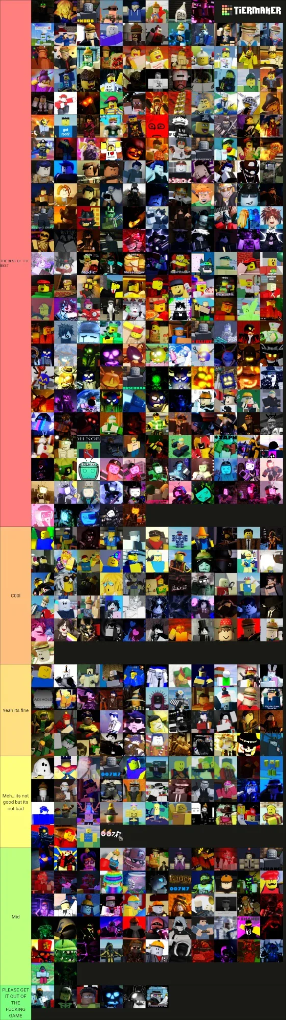 Also if you have the desency to complain "WAAA WAAA WHY IS X THING ON X TIER,IT SHOULD BE ON X TIER CHANGE IT NOOOOW WAAA WAAAA" buddy GO FUCK YOURSELF,its my opinion,not everyone will agree with you,you fucking cry baby MY GOD