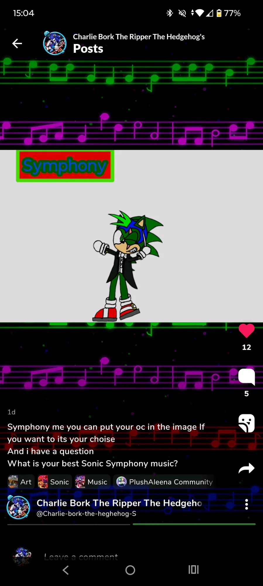 Symphony me you can put your oc in the image If you want to its your choise