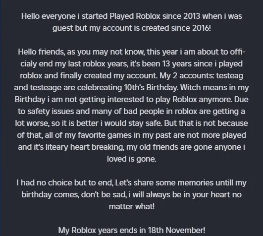 My Roblox years finally ends on my Birthday!💔 (You guys never know me on roblox account or any games, but i think you guys will understand soon....)