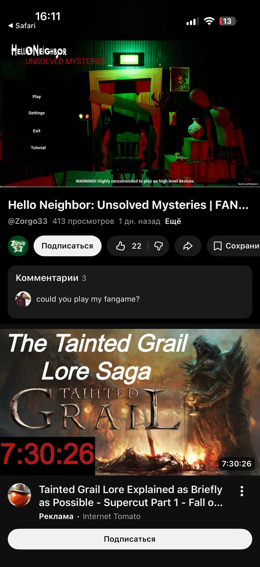 guys my name on YouTube is HlibxzeGAMES with hello neighbor 2 avatar