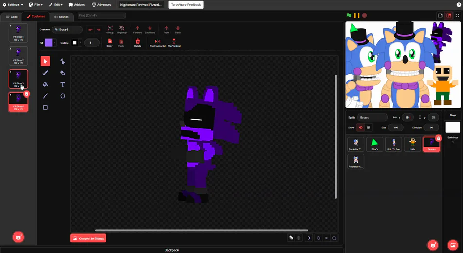 kane has just kindly sent me a screenshot of an unfinished game he was making called "Nightmare revived pizzeria simulator"