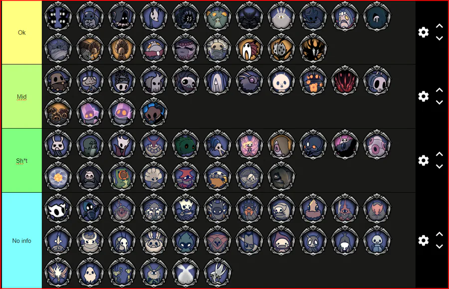 Hollow knight npc/bosses raiting