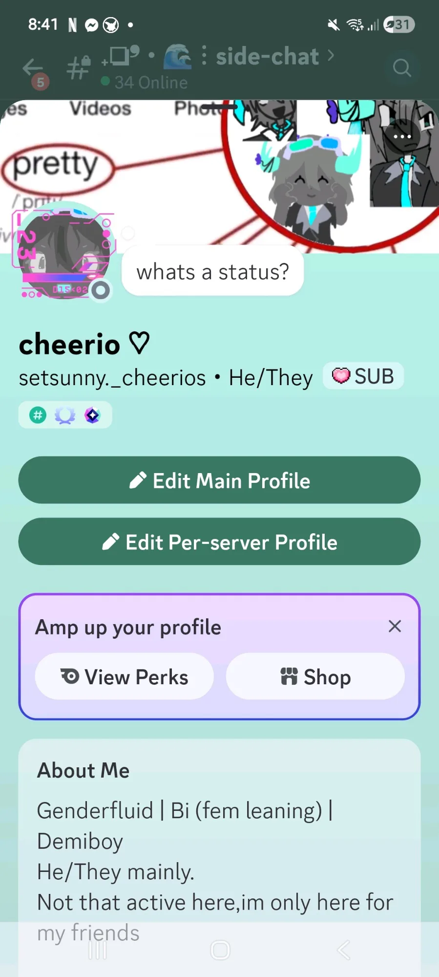 Discord profiles i made wifh my nitro...cough.