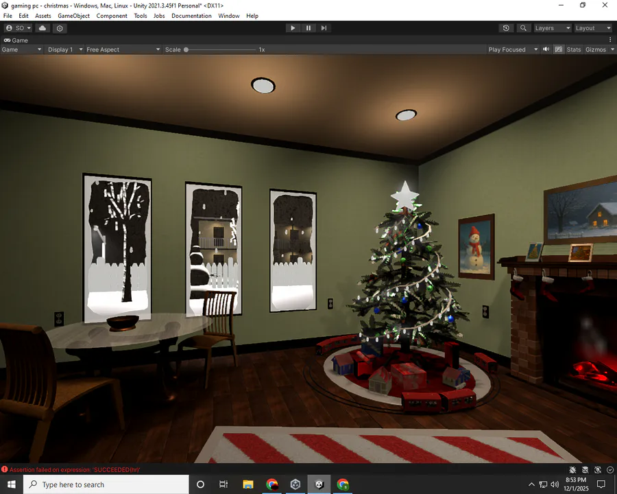 a little Christmas tree scene..working on the lights around the tree still a long way to go,maybe put some snow outside the windows on this one