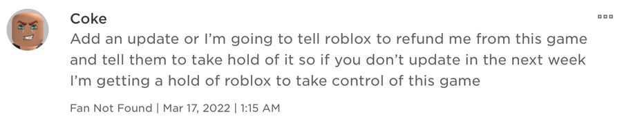 A game called Lootquest on roblox is getting hated on many people just because of it not updating!