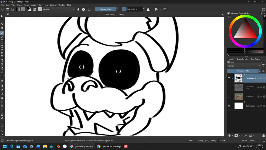 Shitty mangle doodle I did in Krita. She was mainly meant to test out the awesome brush I used. If you use Krita and want the brush, find it here: