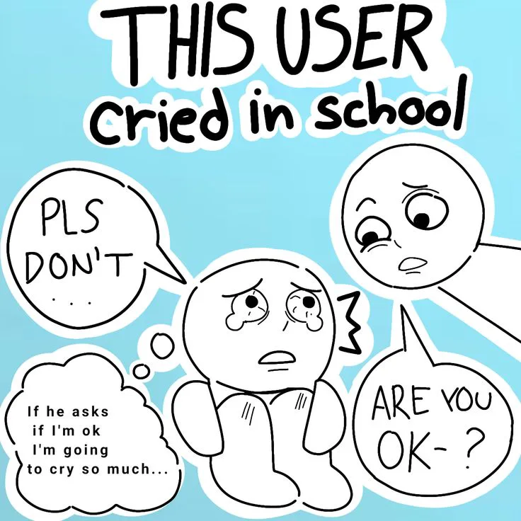 SOBS WHEN I WAS IN THIRD GRADE I FR CRIED FOUR TIMES BECAUSE SOME KIDS WERE MAKING FUN OF ME- < embarrassing memories >