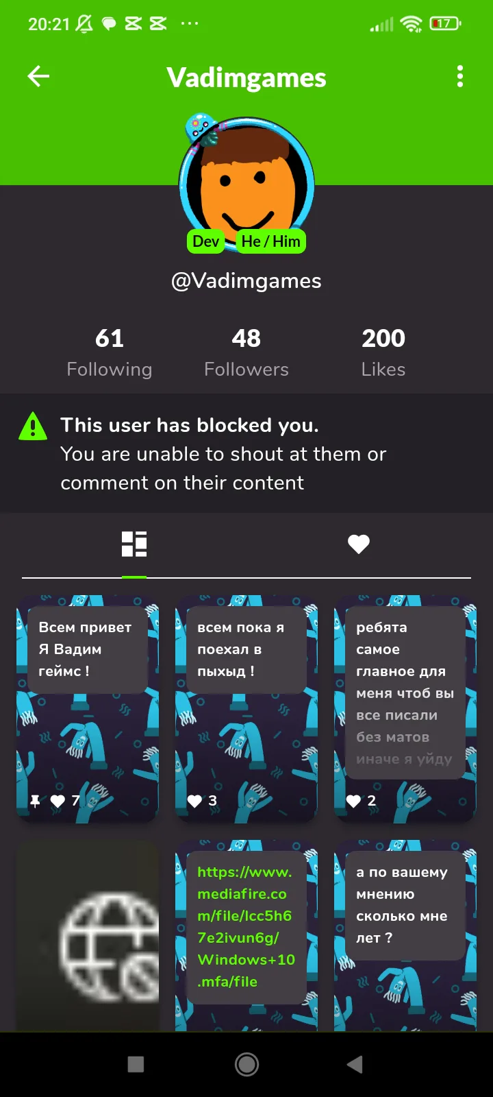 Щикастик зачем ты создал аккаунт @Vadimgames