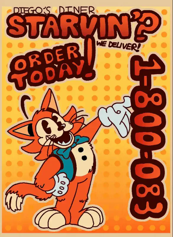 Starvin'? Well, Come on down to Diego's Diner for Pizza, Fried Chicken, Burgers, Fries, Shakes and more!