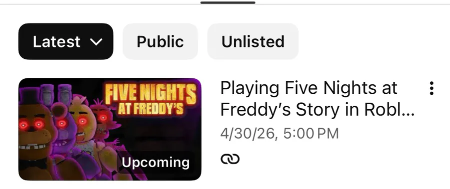 Make sure to be there as I will be streaming Five Nights At Freddys Story on Roblox!