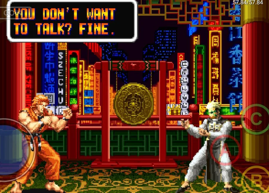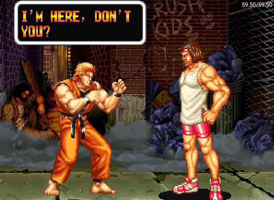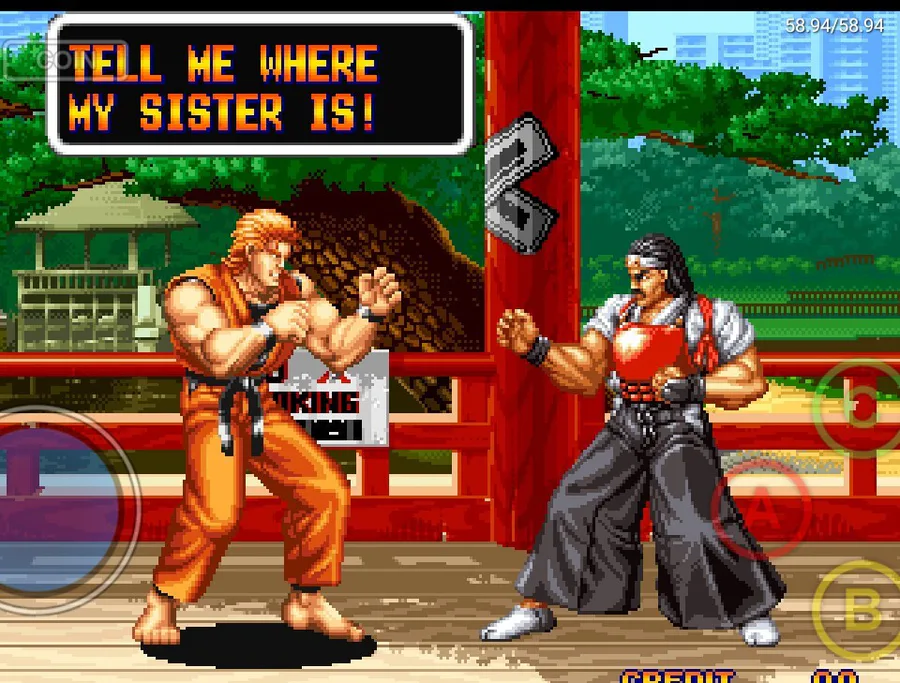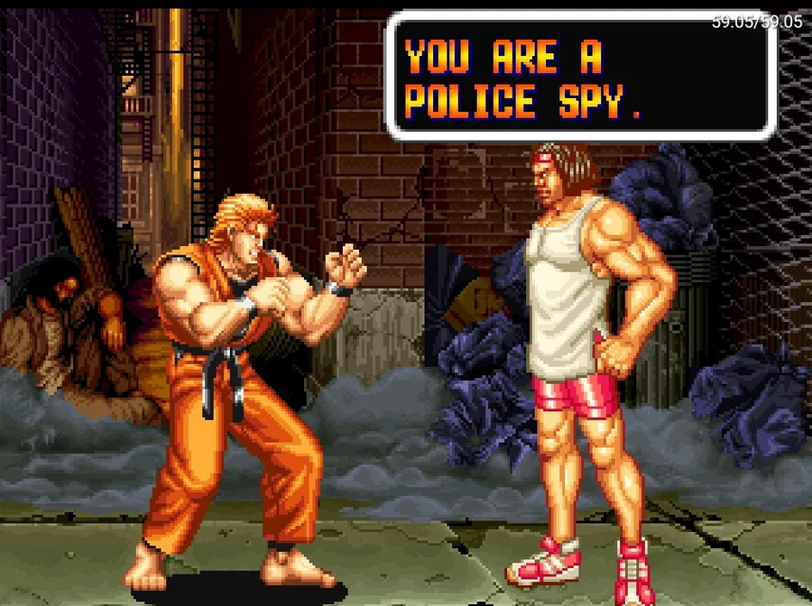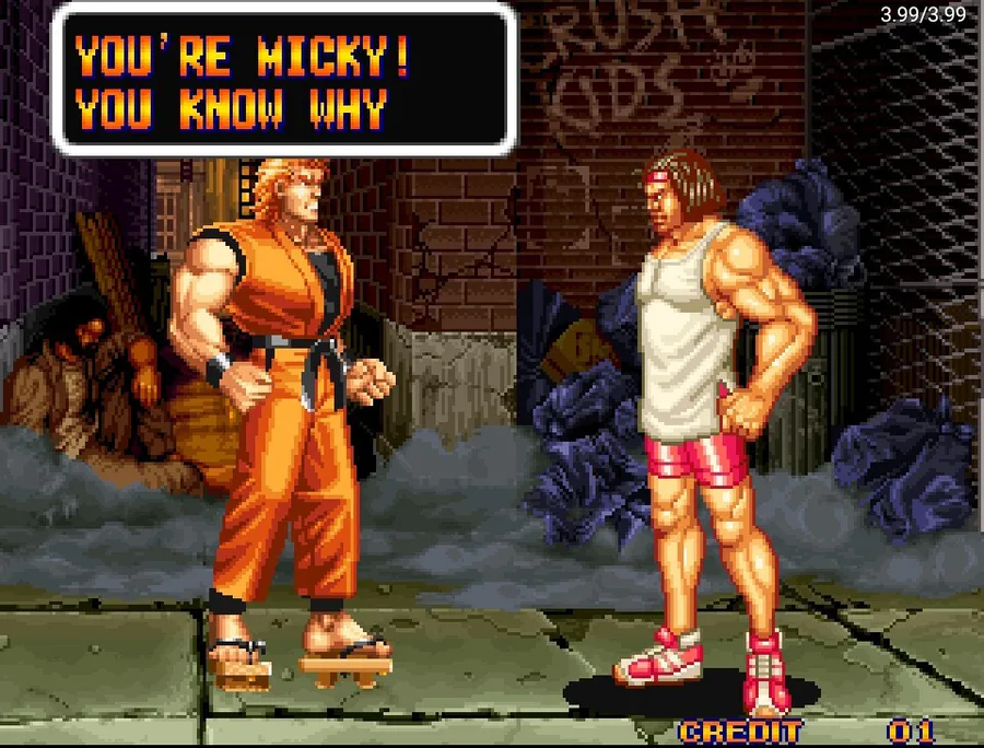 Happening before Fatal Fury, Ryo Sakazaki and Robert Garcia are 2 friends that are practitioners of the Kyokugenryu Karate and that one day they found out Ryo's sister Yuri Sakazaki was missing, and now they're off to look for her throughout the city.
