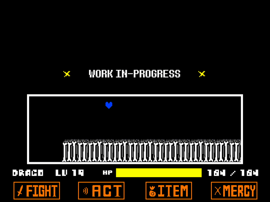 Some of Phase 4's attack I got done earlier... I was surprised that it was still dodgeable with Undertale's blue soul gravity, but I might make some adjustments to the beginning part just to make it slightly less tight...? It might not be necessary.