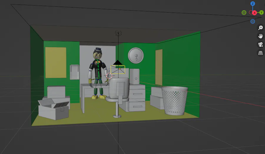 Yeah...as you can see,this blend file don't have the rest of the pizzeria map,it's because i made a separate blend file to make the new Office like i said when i show the new player camera. To be honest,this is great for me to make the versions of the animatronics in the office and thanks to this,i can make now the Flash Light mechanic that i will explain in the next post about the fangame
