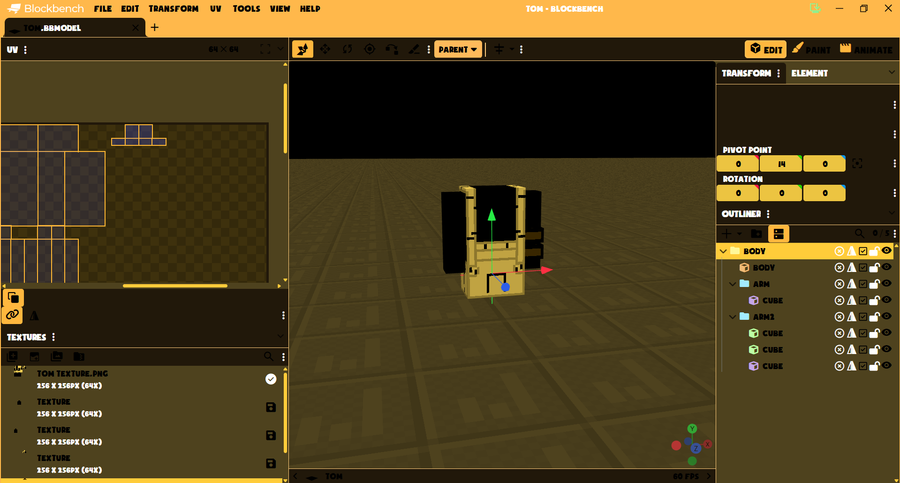 So, here's the screenshot of me modeling Tom