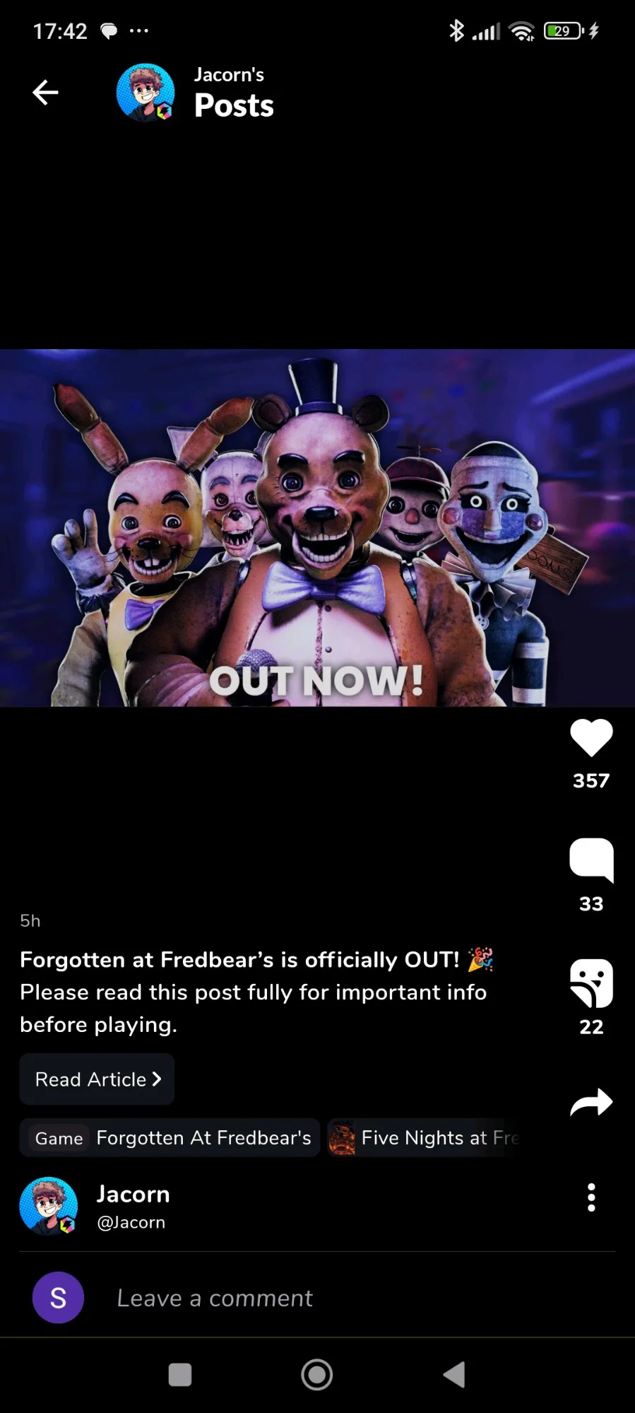 Forgotten at fredbear's is out!