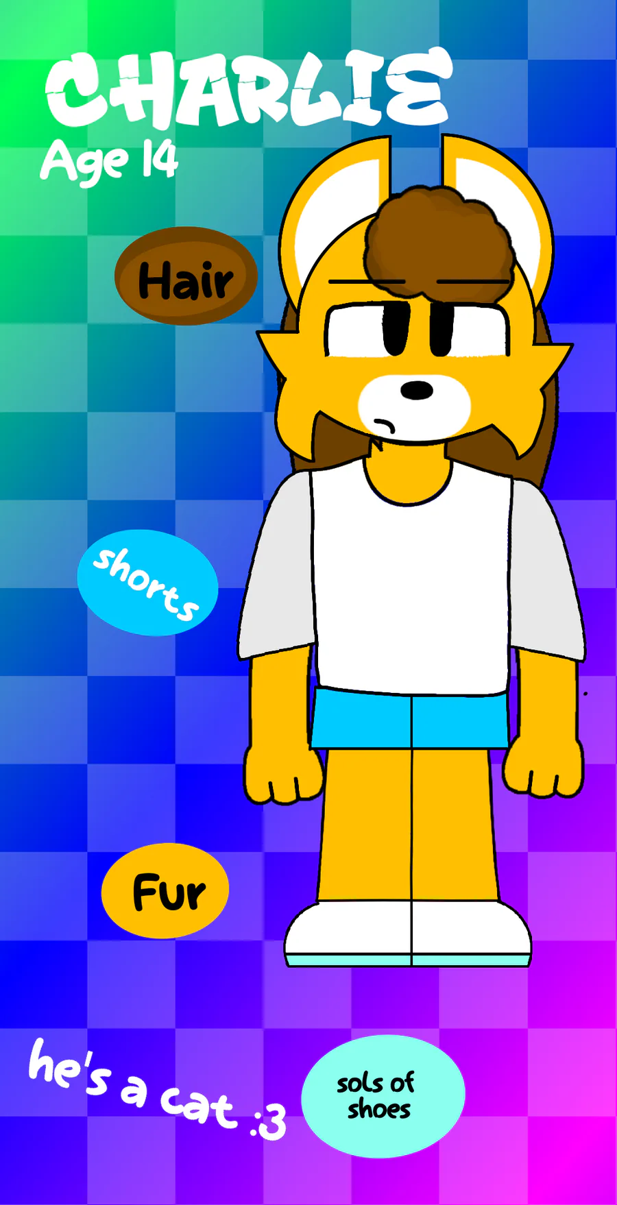 Charlie is a cat/fox idk can’t decide he’s crossbred he is 14 and he likes doing art like (me) 😀 lol