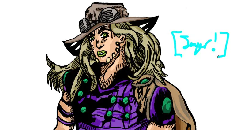 This is my drawing of Gyro Zeppeli, from Part 7, SBR (Steel Ball Run).