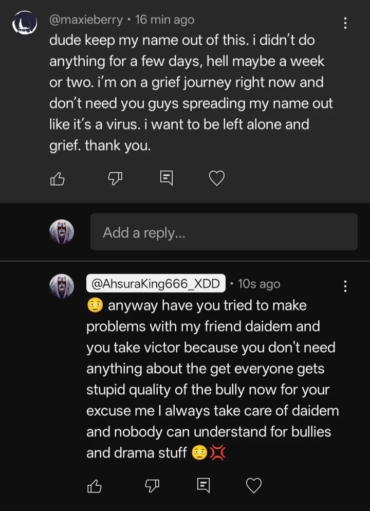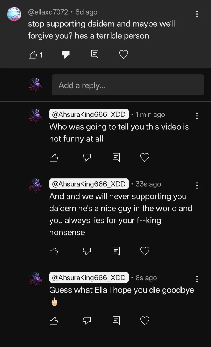 Know what idc and also shut the hell up -_- Ella your will be blocked and @DaidemGillitros
