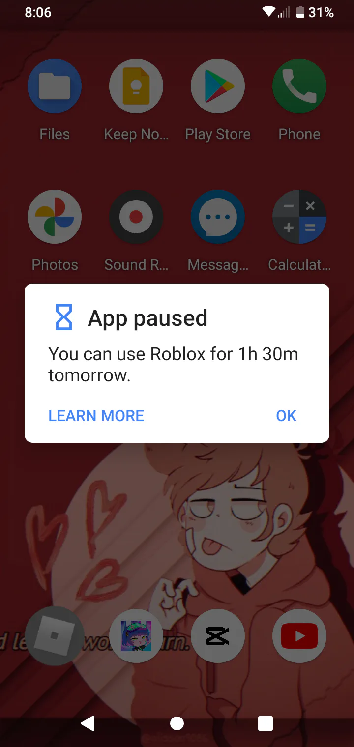 I hate my mom but I love her because she added more time to Roblox :)