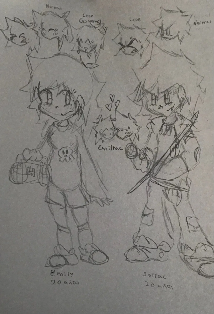 Diseño de los protas del mod. Emily (gf) y solrac (BF)