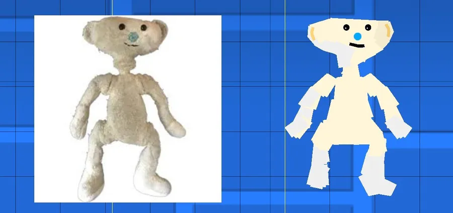 BEAR skin for rammer, left is reference, right is the skin i made for rammer. i put this ln GD realm cuz im making this game on GD, i put, roblox realm cuz BEAR is from the game BEAR, and DBD cuz this game is inspired by DBD