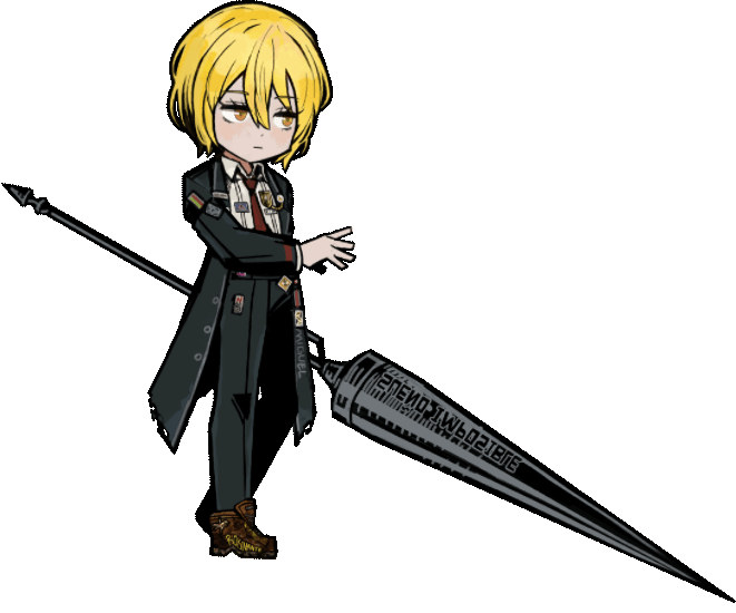 Faust holds donqui's lance and hits this cool ass pose