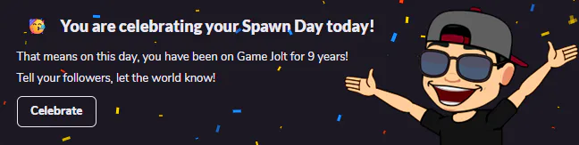 🎊 Today marks 9 years since I've been here at Game Jolt! 🥳 If you comment on this publication between today and tomorrow, Thursday, I'll give you a sticker pack 🎉 #spawnday