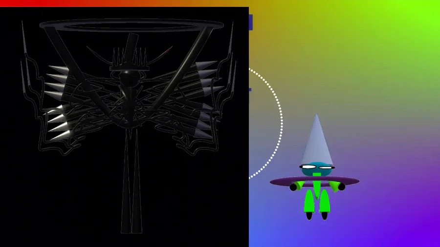 kanubi (cone head guy) and honbi (sphere head guy) from that one dnb fantrack named competitive