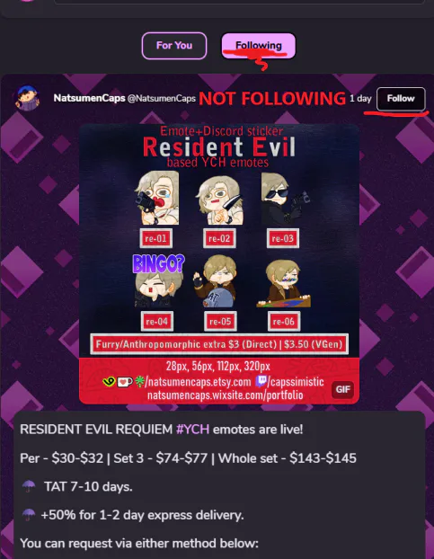 idea: maybe make the FOLLOWING page.. only for people im following? kinda defeats the point of a following page if it includes a random ass guy who i am not following.