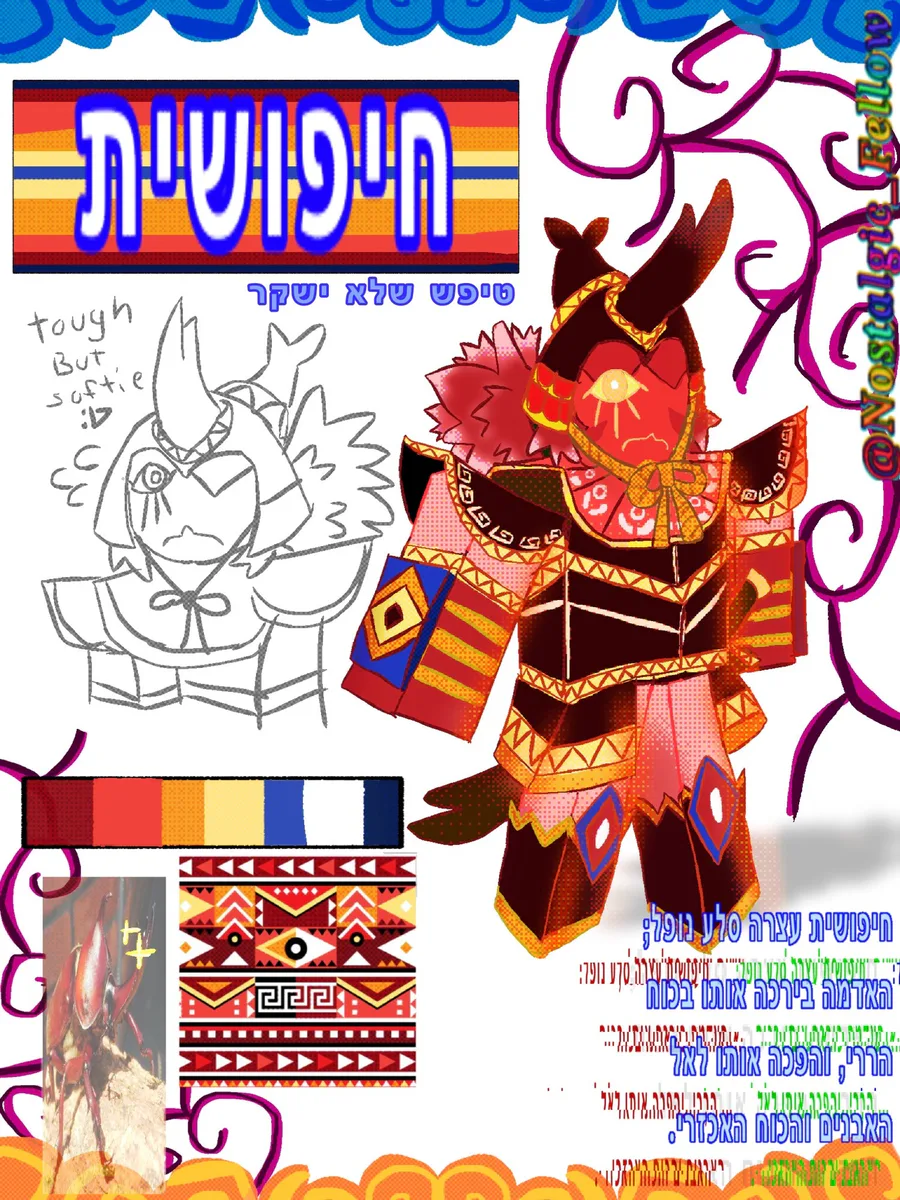 I based him of a Peruvian patterns and as well as a red horned beetle and they are a samurai ;]