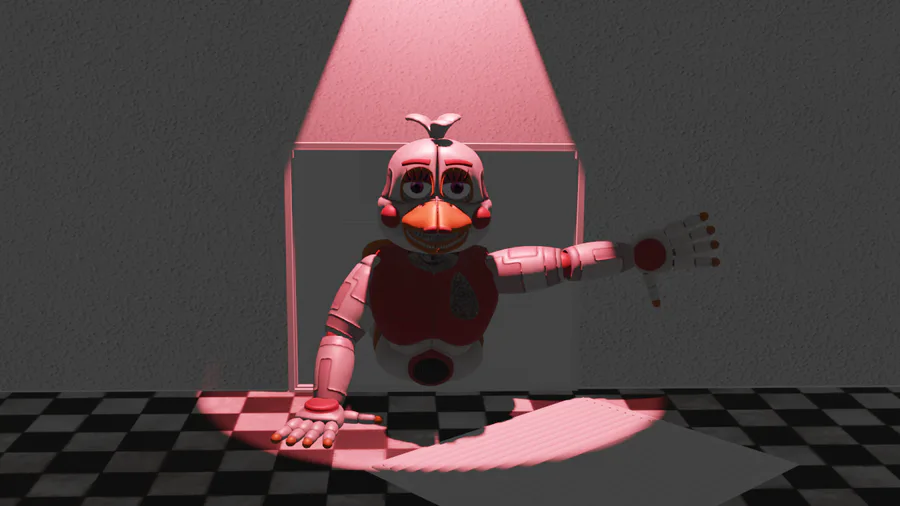 we found this animatronic in our place so we did put it there in case we need a part of him and there is some sort of name on his chest so we name it "Finnat the Fox" we still don't know why his eye's still Glowing and were he is getting the power from